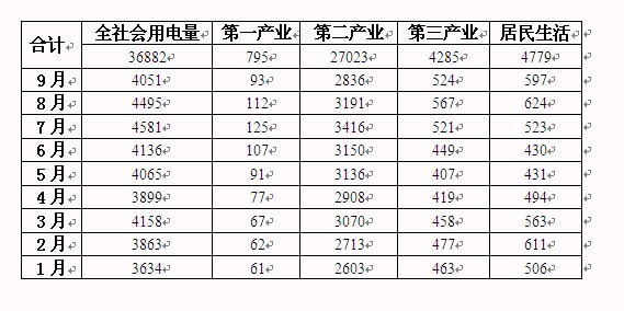 2012年1-9月我國(guó)全社會(huì)用電情況